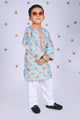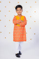 Boys Yellow Leheriya Kurta with Turquoise Embroidered Waistcoat