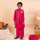 A regal ode to tradition, the HariRaaj set is a vibrant three-piece ensemble featuring a green Bandhani print Nehru jacket, matched perfectly with a coordinating kurta and pajama in cotton silk. The classic Bandhani motifs reflect age-old craftsmanship from Gujarat and Rajasthan, making it a celebration of cultural heritage.