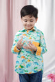 Aqua Print Kurta Style Shirt With Mandarin Collar