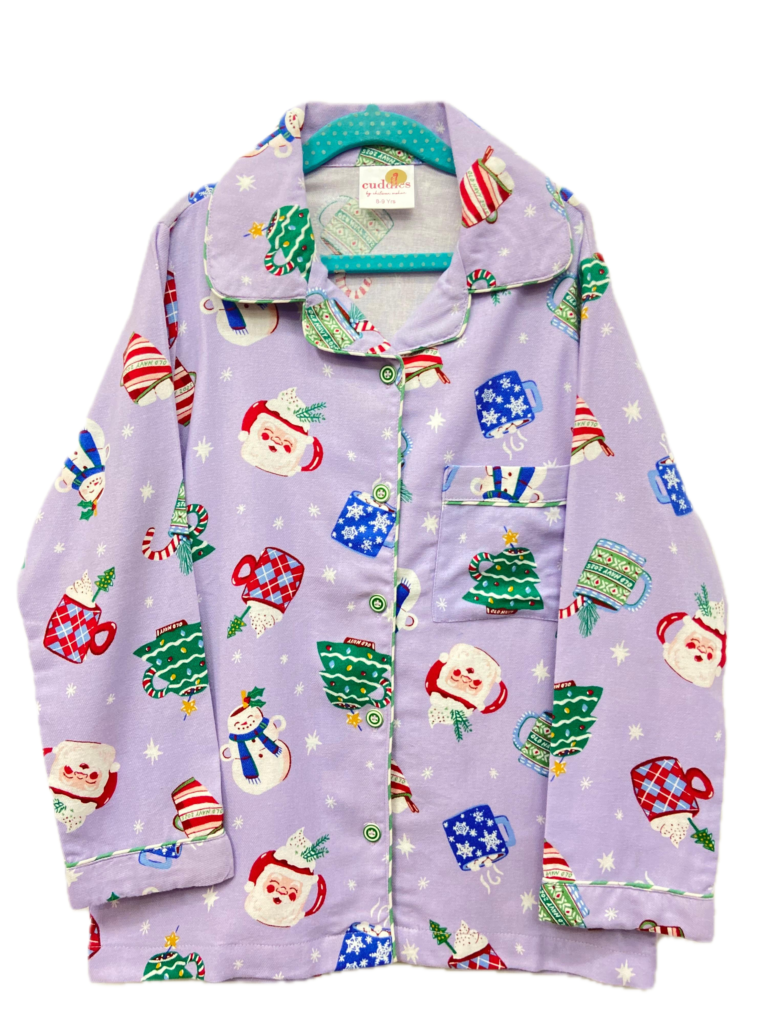 This super-soft flannel PJ set brings all the Christmas cheer with its adorable Santa, snowman and holiday mug prints. Warm, breathable and oh-so-cuddly—perfect for cozy nights, bedtime stories and festive mornings.
