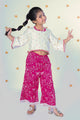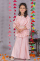 Full of festive flair and modern elegance, the Nazakat Set is a delightful choice for special occasions. The sleeveless, front-open jacket features a striking geometric print and playful tassels that hang beautifully at the hemline — adding charm and movement to every step. Paired with flared organza bottoms, lined with soft mul mul for extra comfort, this outfit is designed for your little one to twirl, play, and shine through the celebrations.