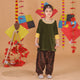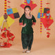 This elegant ensemble features a rich velvet kurta adorned with delicate lace detailing on the neckline and playful side tassels for a charming touch. Paired with a beautifully block-printed georgette salwar and a matching dupatta, this outfit blends tradition with modern grace.