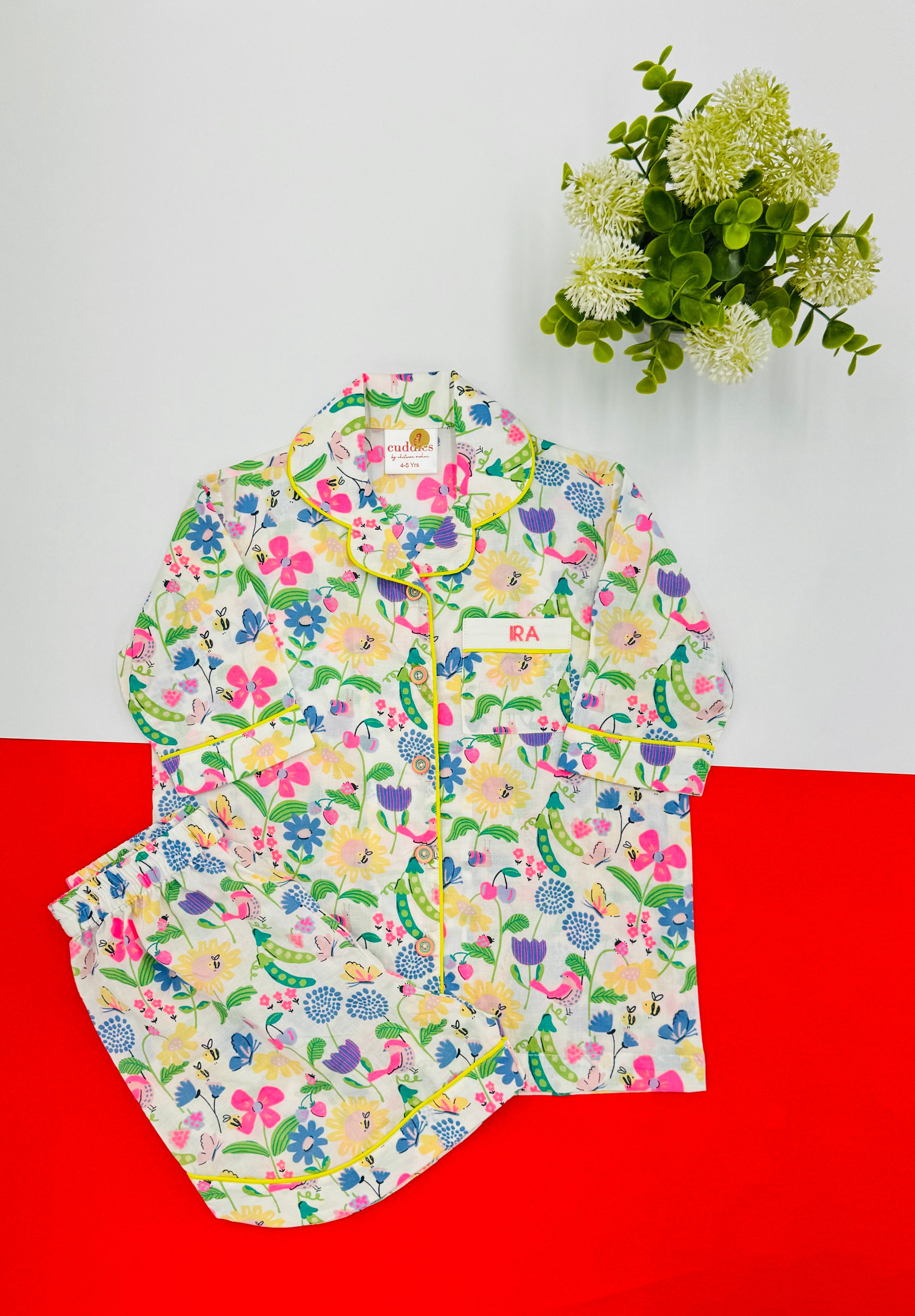Girls Floral Print Cotton Breathable Kids Summer Nightsuit
