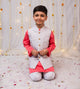 The "Holi Color Splash Bandhani Print Kurta Jawahar Set for Boys" is a vibrant and stylish outfit designed especially for boys to celebrate the festival of Holi or any festive occasion.