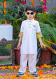 Elevate your boy's style with our Cotton Cutwork Off-White Kurta Pajama Set.