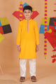 A burst of sunshine for your little one! The Kesar Gul Kurta Set comes in a radiant yellow cotton base adorned with delicate white block-printed motifs. Thoughtfully detailed with contrast pink piping and handcrafted buttons, this outfit brings together tradition and playful charm.