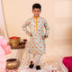 A touch of rani pink piping along the placket and sleeves adds a pop of celebratory charm, while the mandarin collar and straight-cut silhouette lend a classic, refined finish.