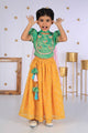 Girls' Pink Mirror Work Choli and Yellow Printed Lehenga Set