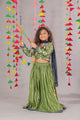 Radiate joy in this vibrant yellow lehenga set, designed to make you stand out at any occasion. The blouse, made from soft cotton silk with a striking print, offers a delightful blend of traditional grace and modern flair. The flowy cotton skirt, adorned with intricate gota detailing, adds a shimmering touch to the outfit, exuding elegance with every twirl. Paired with a charming matching bag, this ensemble is perfect for festive gatherings, weddings, or cultural celebrations, delivering both comfort and style in one stunning package.