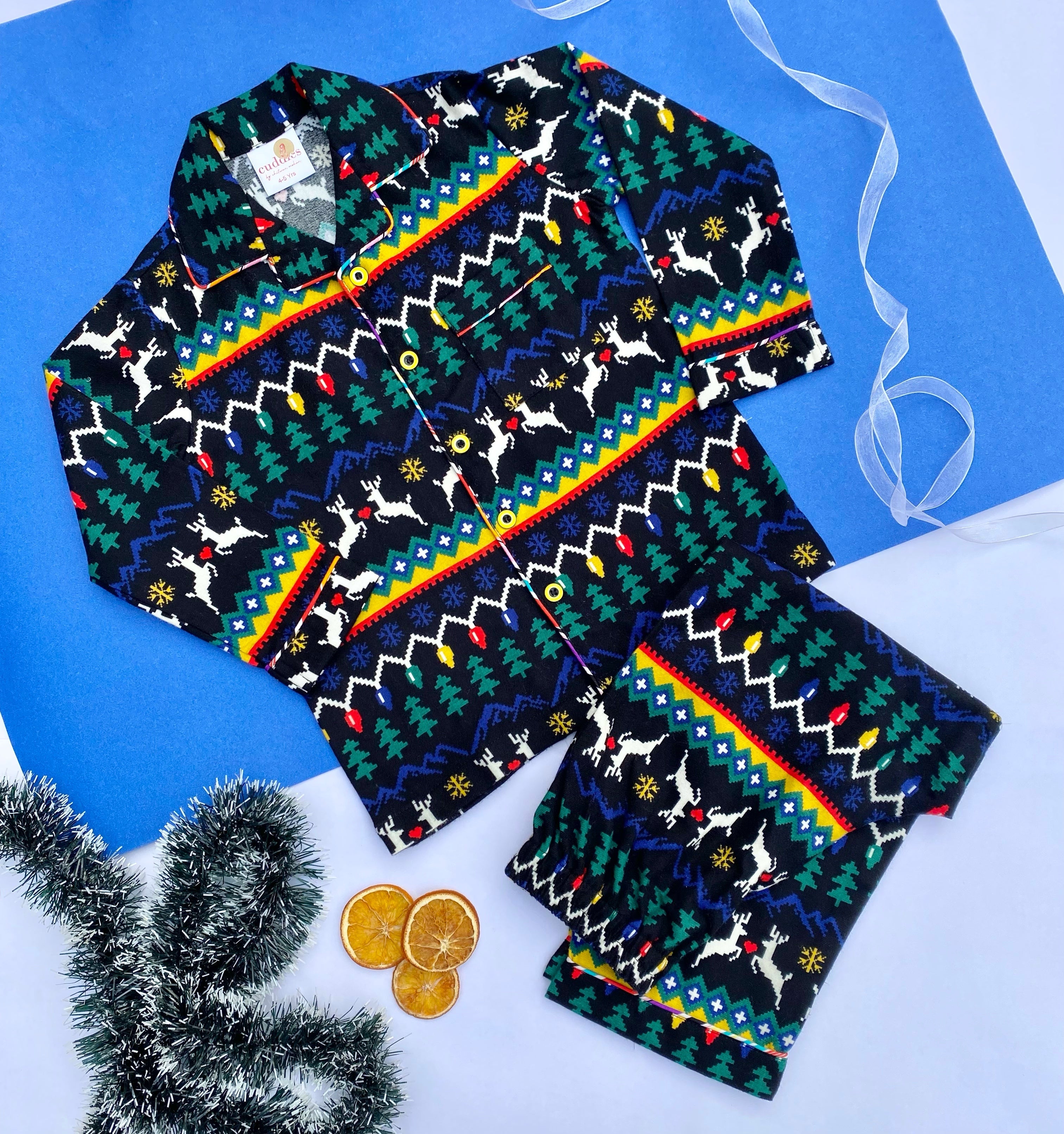 Immerse yourself in the enchantment of the holiday season with our irresistible Flannel Reindeer Nightsuit Collection! Each piece is crafted to bring comfort and joy, featuring charming reindeer designs that evoke the magic of wintertime. Made from premium flannel fabric, these nightsuits offer a cozy embrace on chilly nights, ensuring warmth and snugness as you unwind.