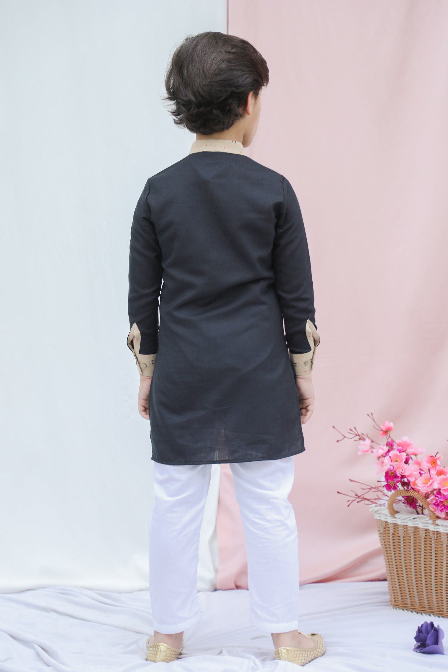 Black Cotton Silk Boys Kurta Pajama