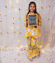 • Bottoms: Voluminous flared sharara pants featuring a comfortable elasticated waistband.