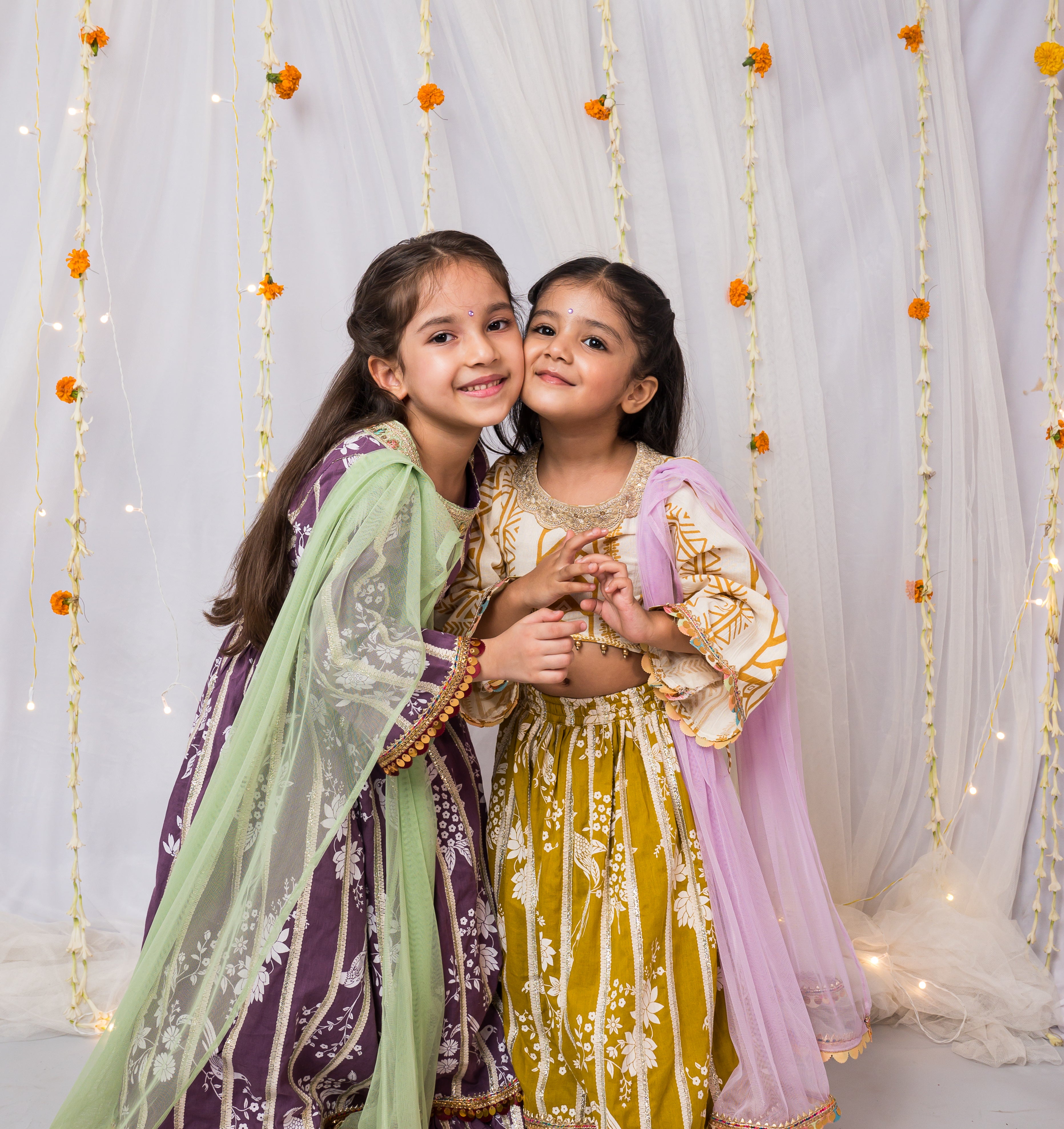 Dress your little princess in the timeless elegance of our Majestic Purple Peacock & Floral Print Lehenga. This beautiful ensemble showcases intricate peacock and floral patterns on a luxurious purple fabric, making it perfect for festive occasions and celebrations. With a comfortable fit and a flair for style, this lehenga is designed to make her feel like royalty, while the vibrant colors and unique design add a touch of playful sophistication. Ideal for girls who love to shine at every event!