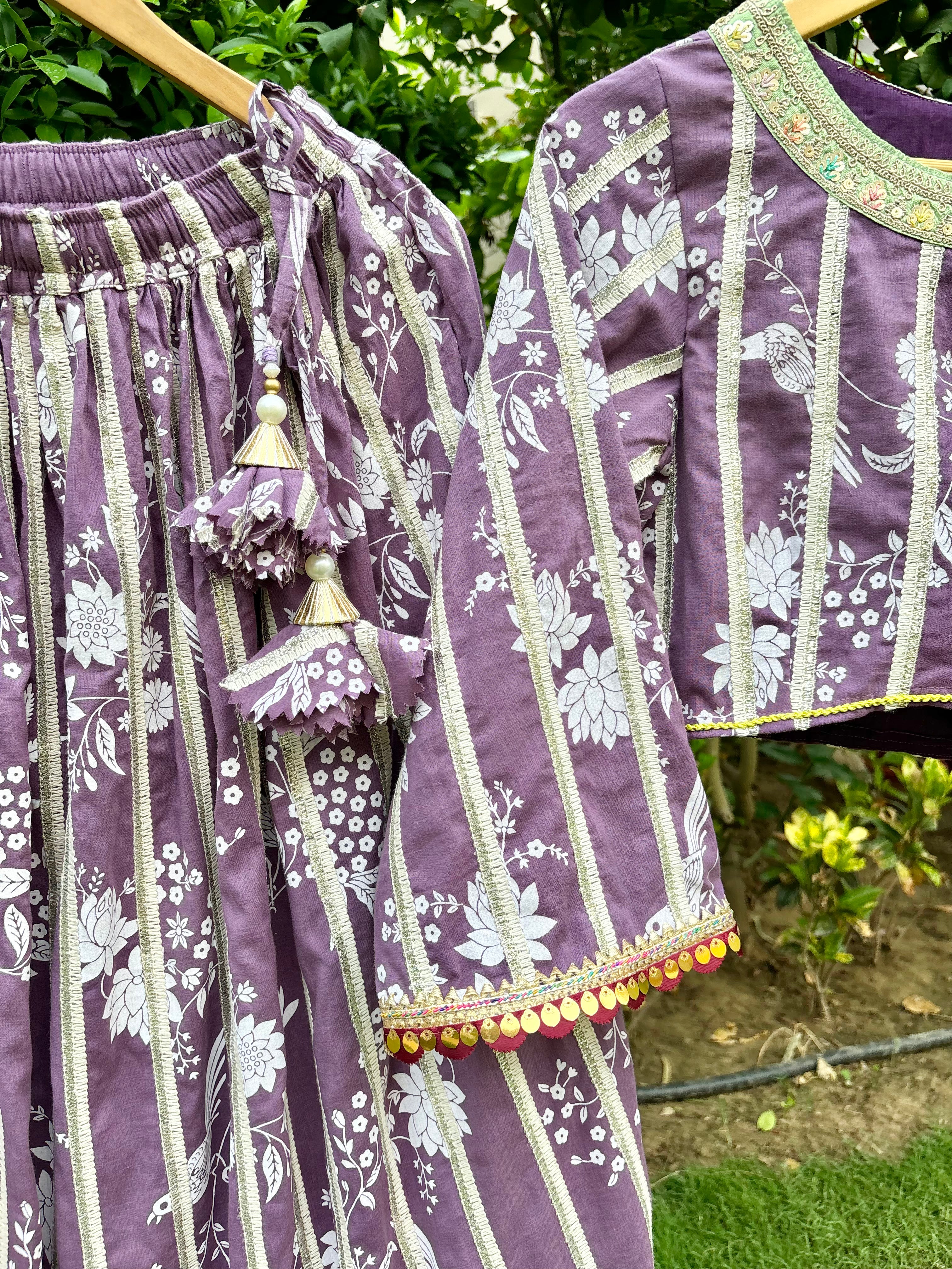 Girls Purple Floral Lehenga Choli Set