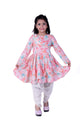Dive into the colorful spirit of your little one with our delightful frock-style Anarkali Sharara set, specially crafted for your little princess. Let her dance through the festivities in style, spreading joy and radiating beauty like a blooming flower amidst the hues of rainbow colors.