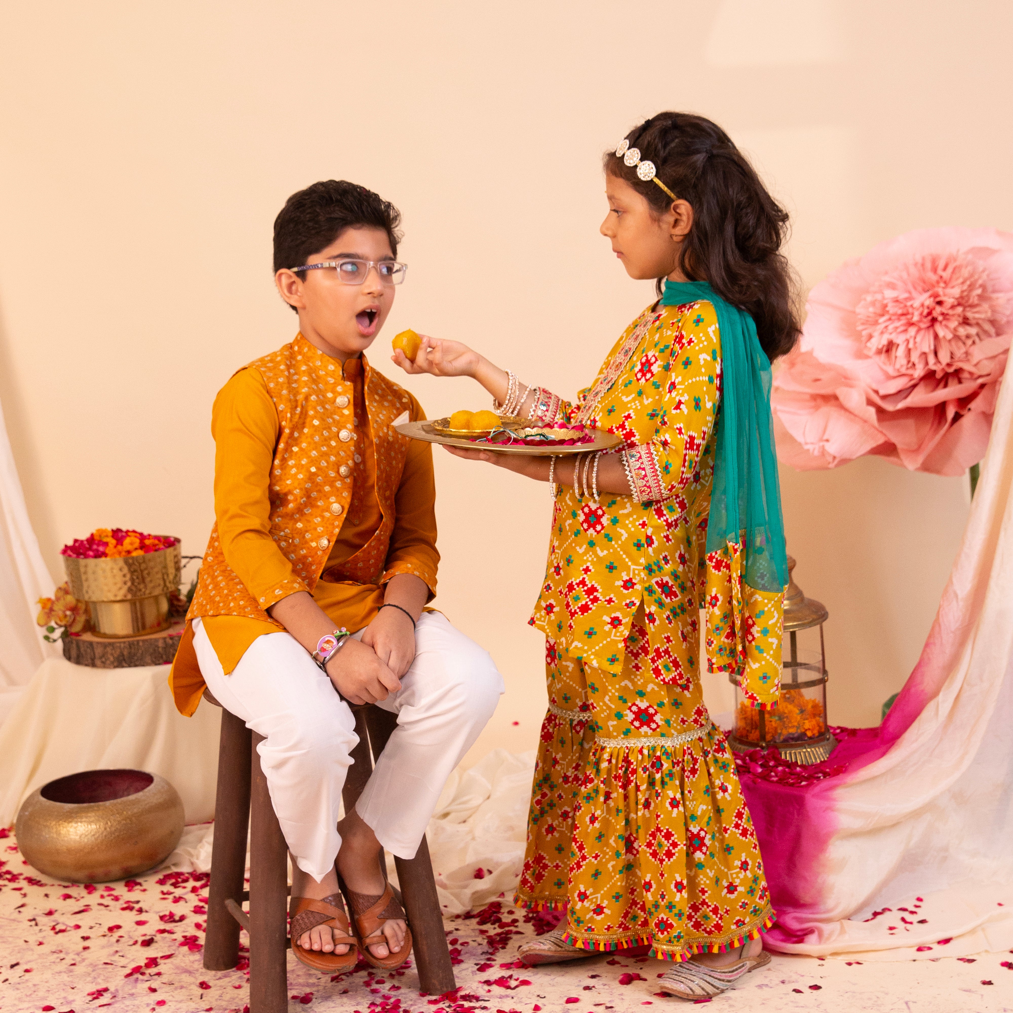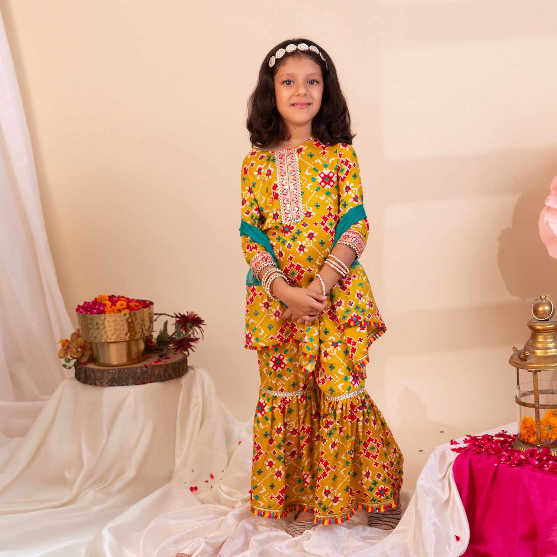 Girls' Mustard Patola Sharara Set