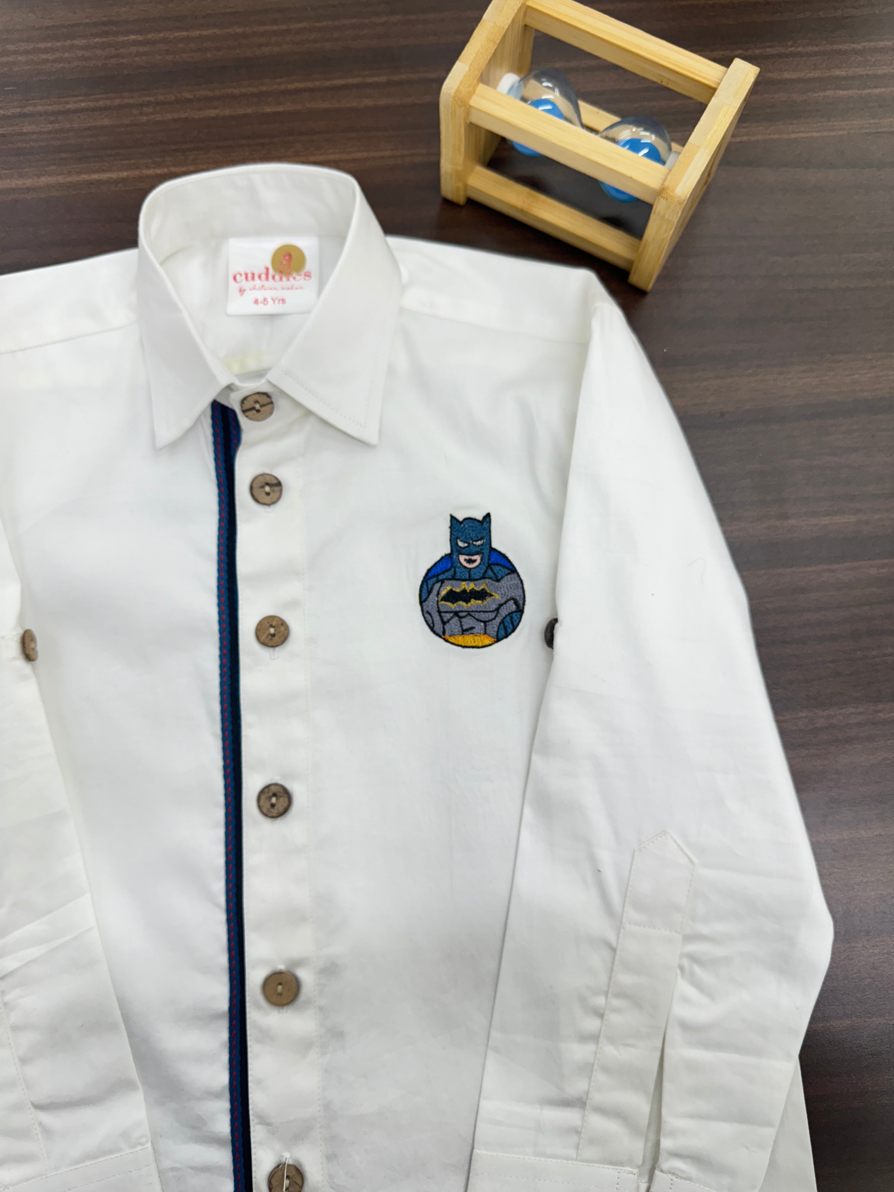 Boys White Batman Embroidered Cotton Shirt