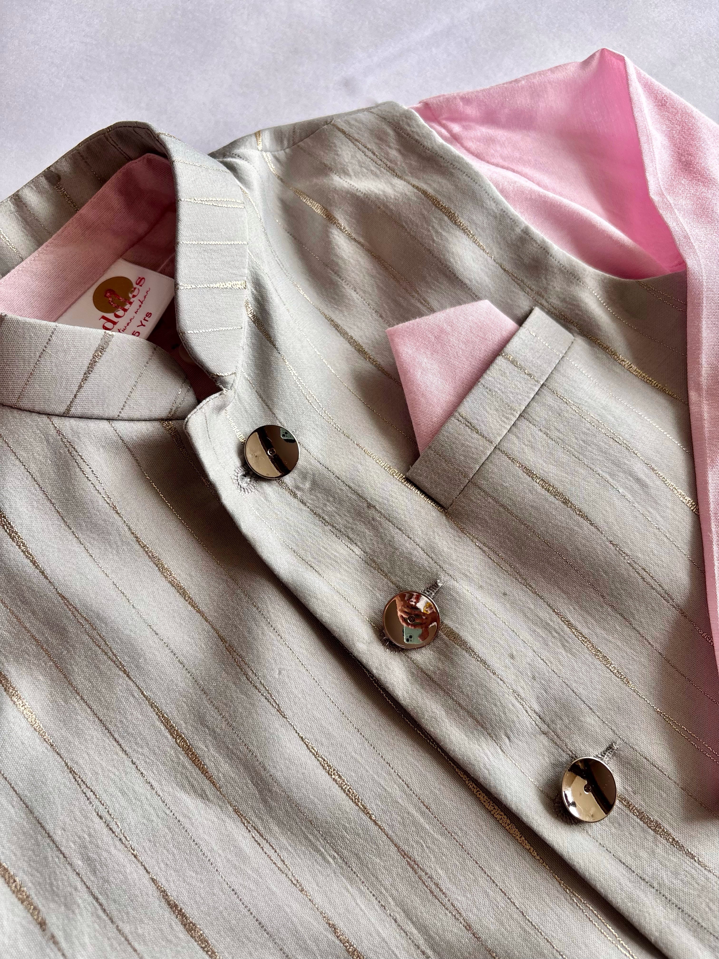Boys Grey & Pink Silk 3-Pc Nehru Jacket Set