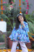 Girls Blue Ikkat Print Cotton Kurta Set