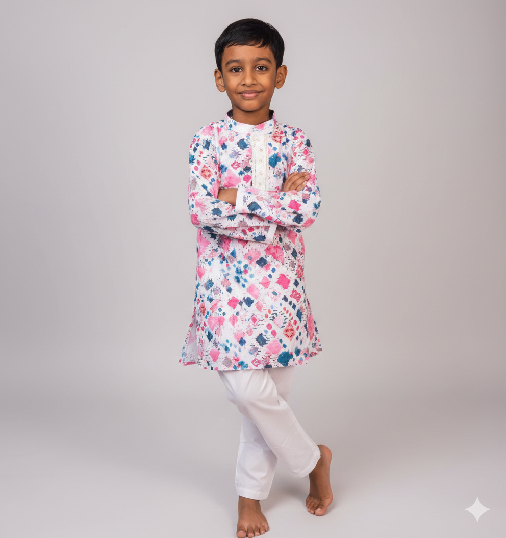 Elevate your boy’s wardrobe with our stunning Multi-Color Floral Chikankari Kurta Set! This beautifully crafted set features intricate Chikankari embroidery in a vibrant array of colors, adding a touch of elegance to your child’s traditional look.