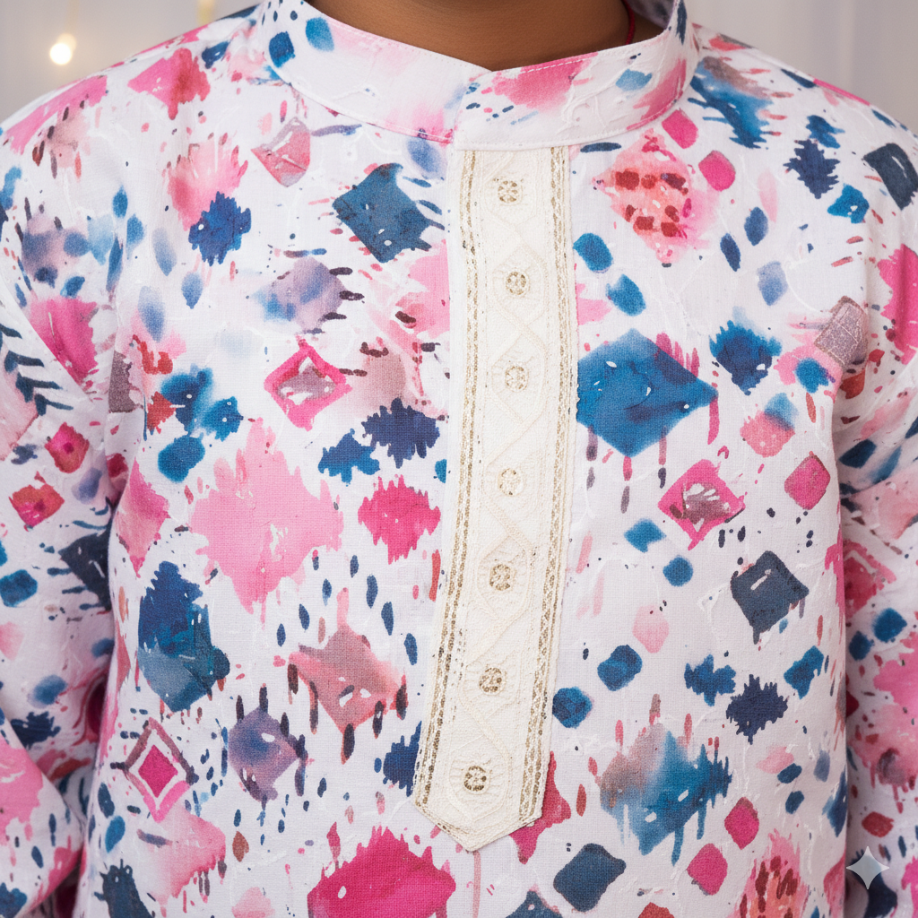 Boys Multi-Color Abstract Print Cotton Chikankari Kurta Set