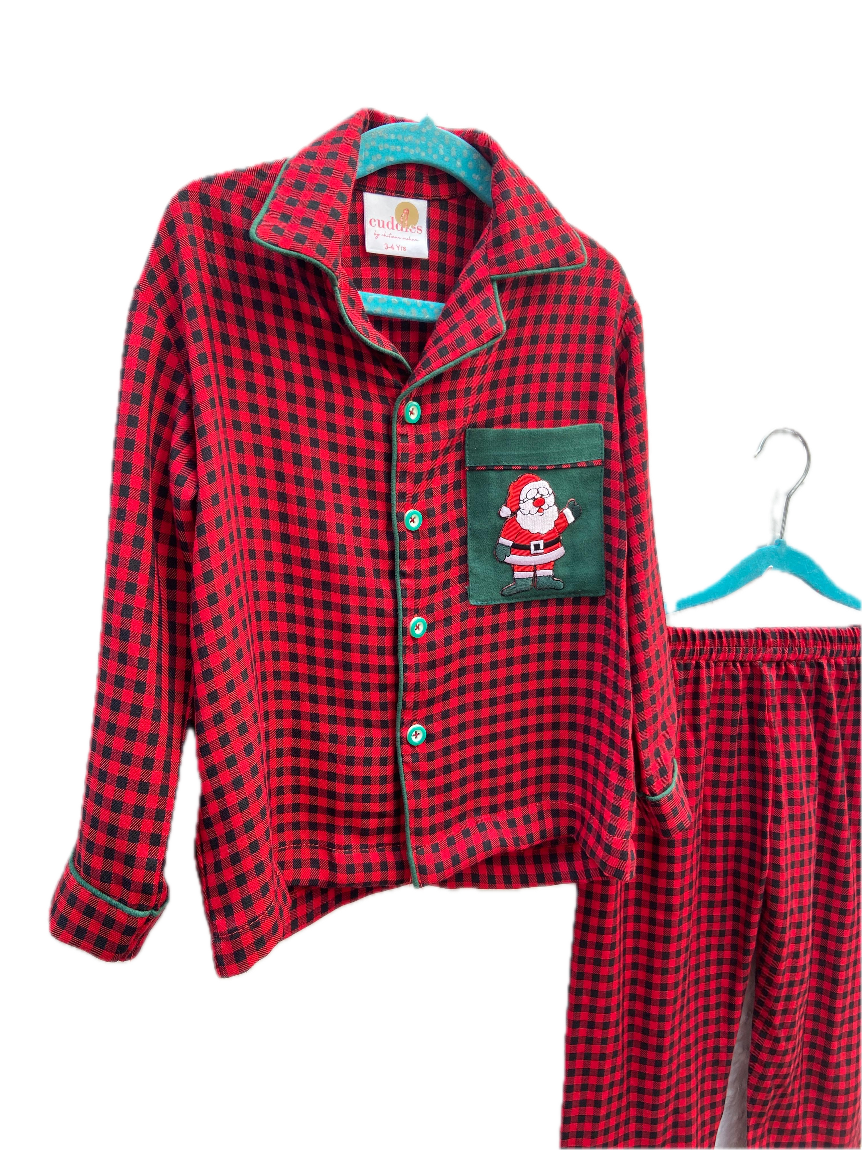 Give bedtime a festive upgrade with our Santa Checkered Christmas Flannel Night Suit!
