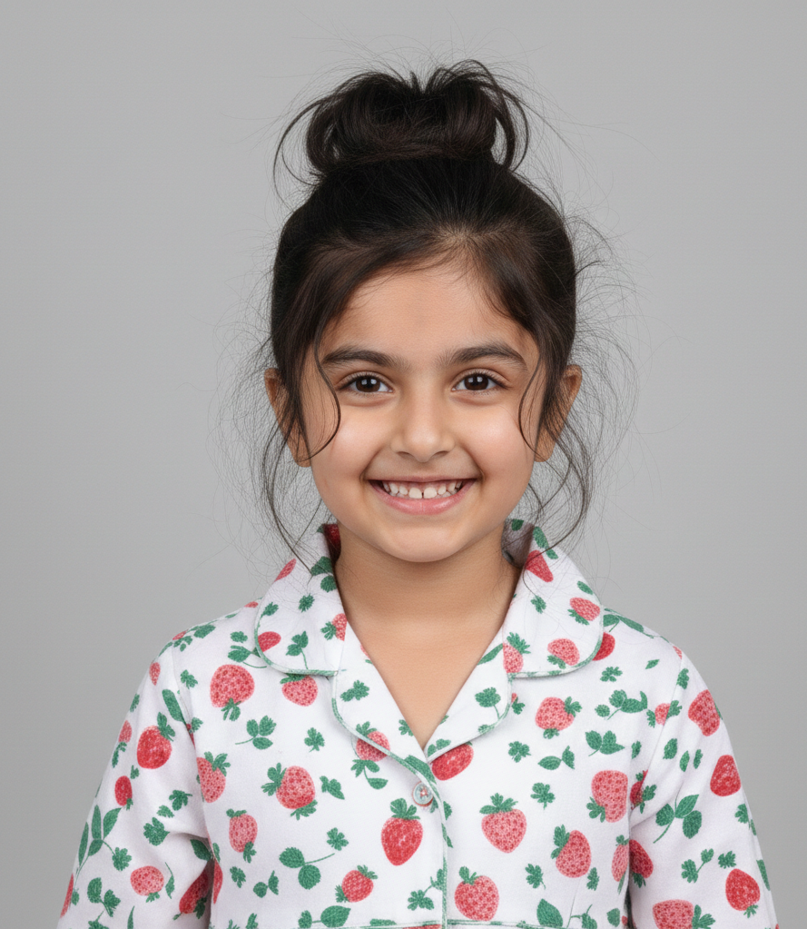 Let her drift into dreamland wrapped in the cozy charm of our Sweet Strawberry Checks night suit. Designed with love for little girls who adore all things cute, this set features a delightful blend of sweet strawberry prints and classic checks, finished with delicate lace trims for that extra touch of girly elegance.