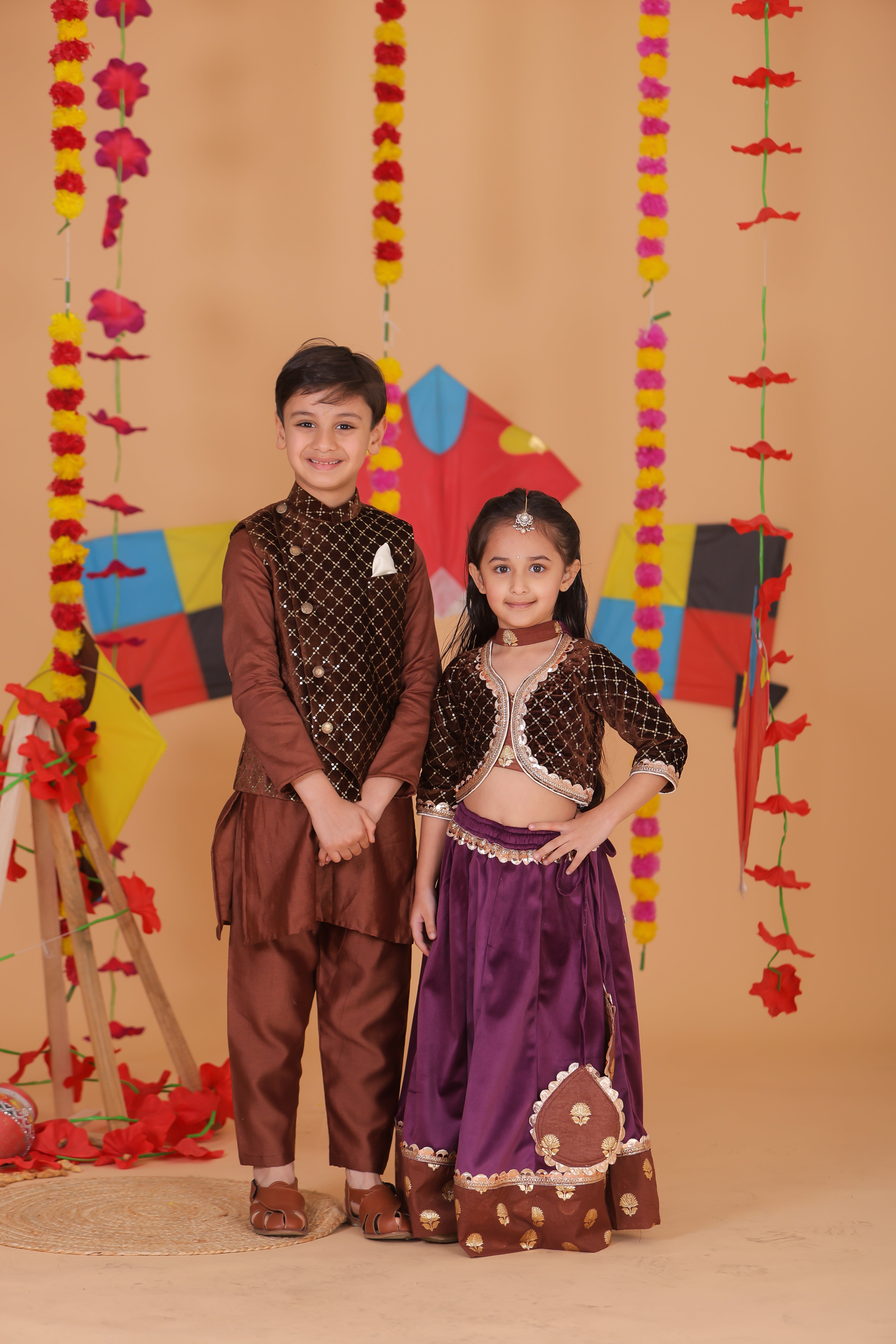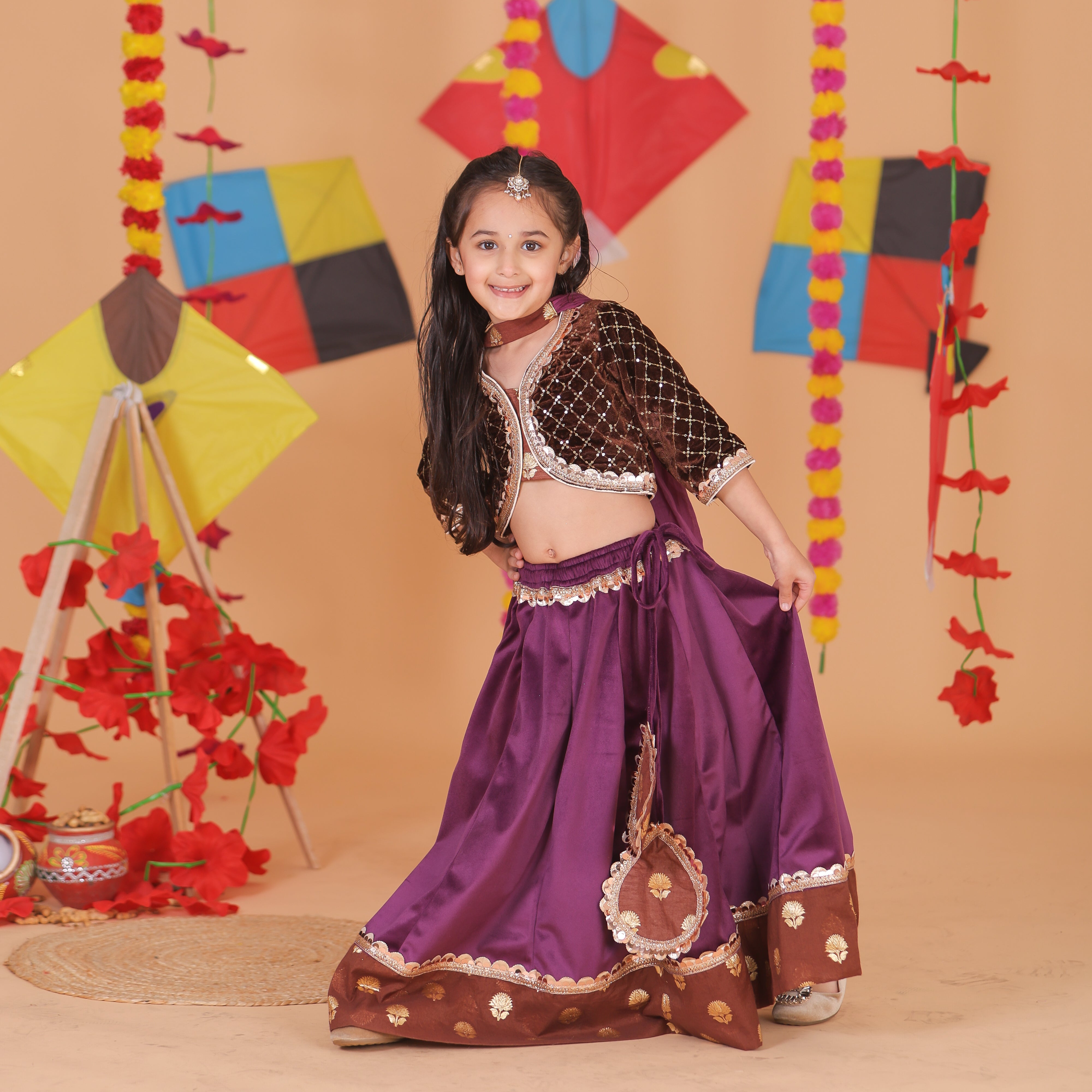 Featuring a dazzling sequin-embellished blouse paired with a rich velvet lehenga, this outfit is designed for elegance and comfort. Perfect for weddings, festivals, and special occasions, it adds just the right touch of sparkle and grace. Soft, stylish, and twirl-worthy—because every girl deserves to dazzle!