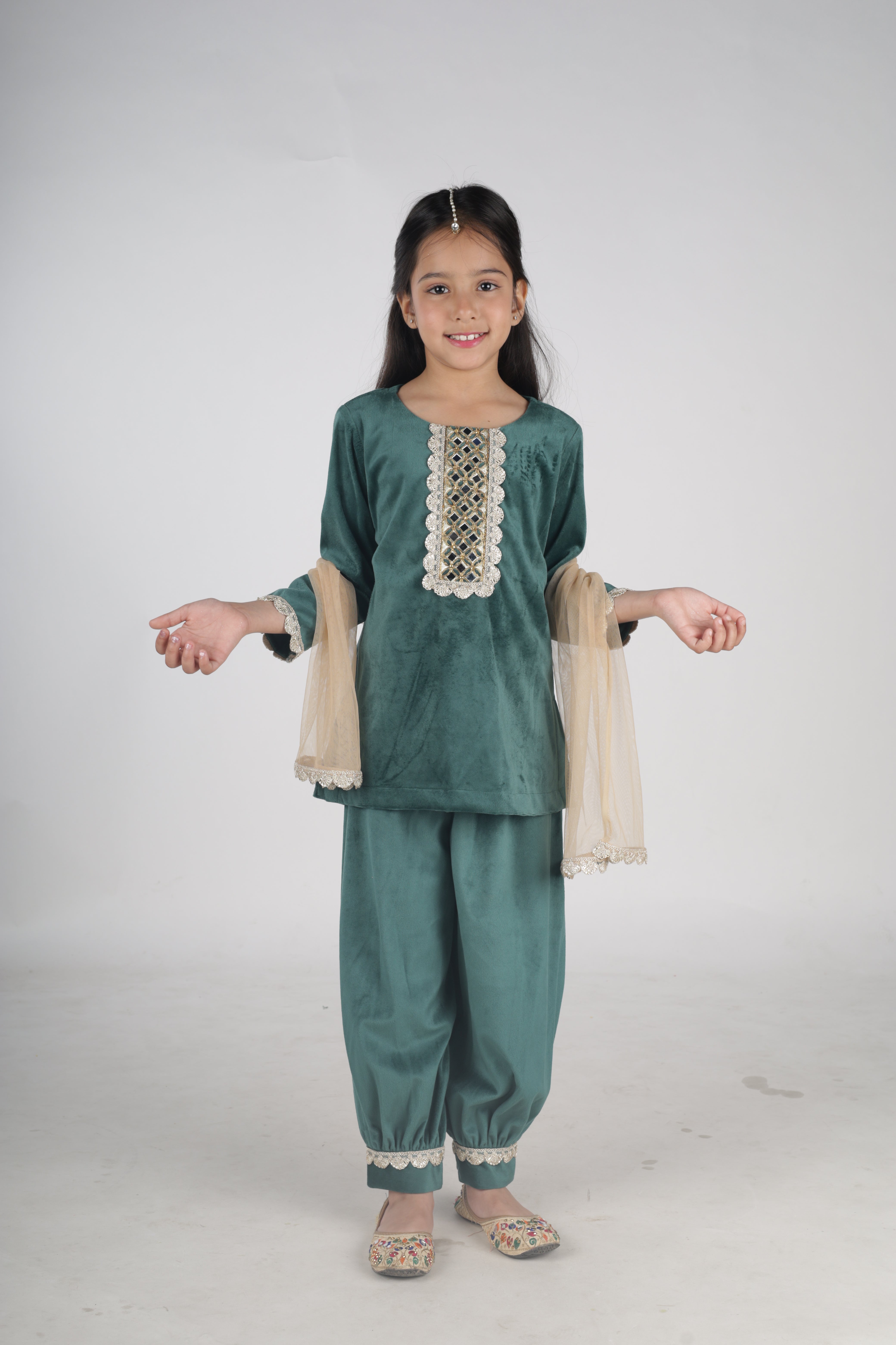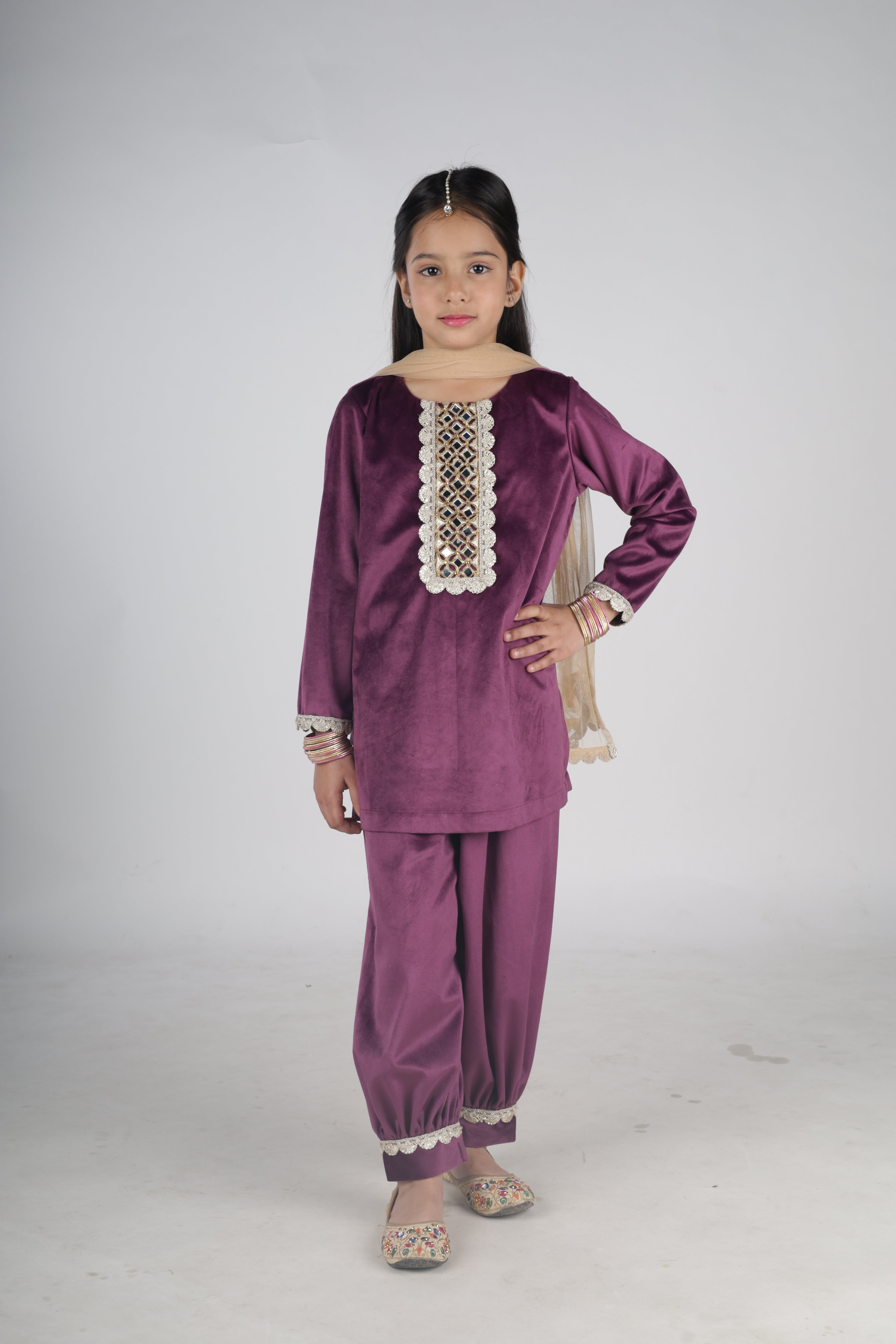 Girls Designer Velvet Salwar Kameez with Lace Details